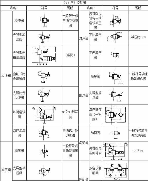 液壓磚機的圖形符號有三角形、直線和斜箭頭、圓弧箭頭等。固體三角形代表壓力傳遞的方向表示所使用的工作介質(zhì)是液體。泵、馬達(dá)、液壓閥和電液閥都有這種功能元件的立體三角形;箭頭表示液體流動的通道和方向,在液壓泵、液壓馬達(dá)、彈簧、比例電磁鐵等上方添加的箭頭表明它們可以調(diào)整;單圓弧箭頭和雙向箭頭表示液壓馬達(dá)的旋轉(zhuǎn)方向,雙向箭頭表示它們可以正向反轉(zhuǎn)。